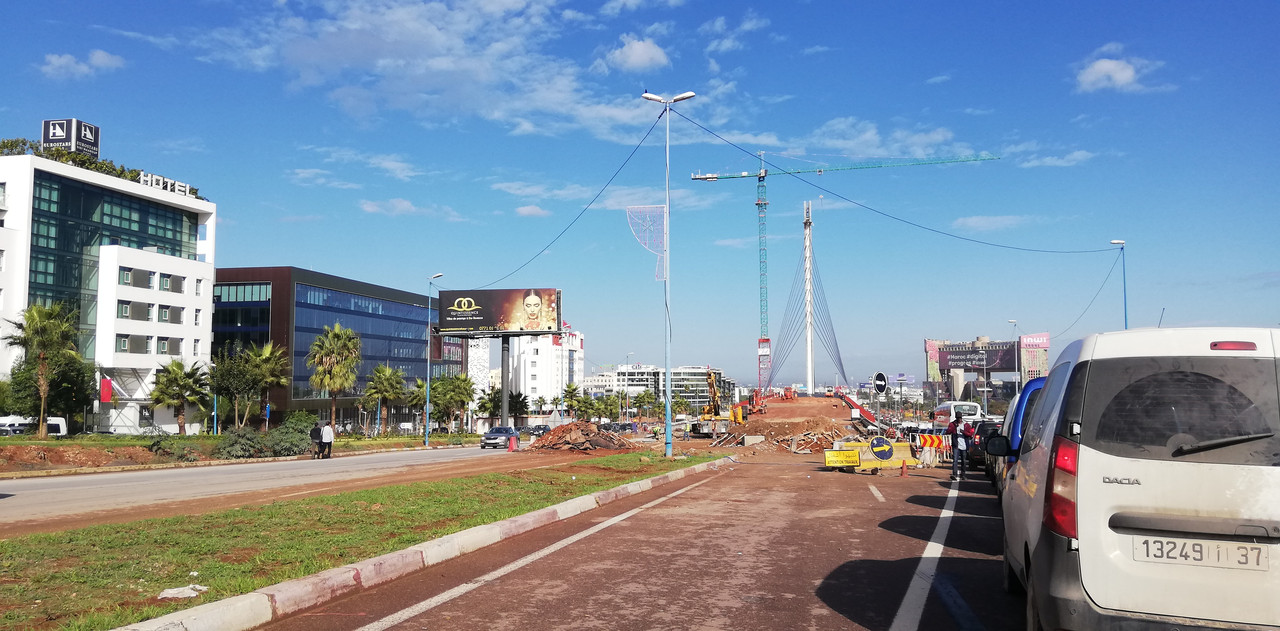 It's typical in Morocco, to finish the main structure, but the surroundings (like sidewalks, lights, signs) are still a mess.